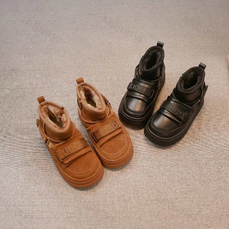 Зимние сапоги для девочек, новинка 2024, зимняя детская нескользящая износостойкая хлопковая обувь, модные удобные полусапожки с боковой молнией для мальчиков