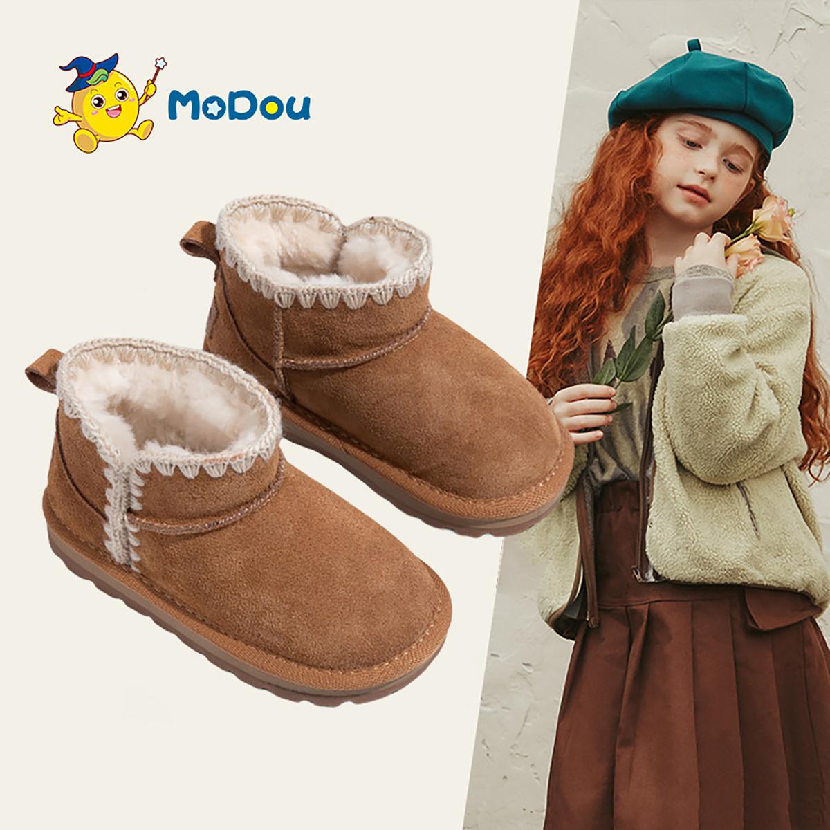 Зимние сапоги Mo Dou для девочек, зимние утолщенные удобные теплые хлопковые туфли с мягкой подкладкой, уличные нескользящие повседневные ботинки на плоской подошве