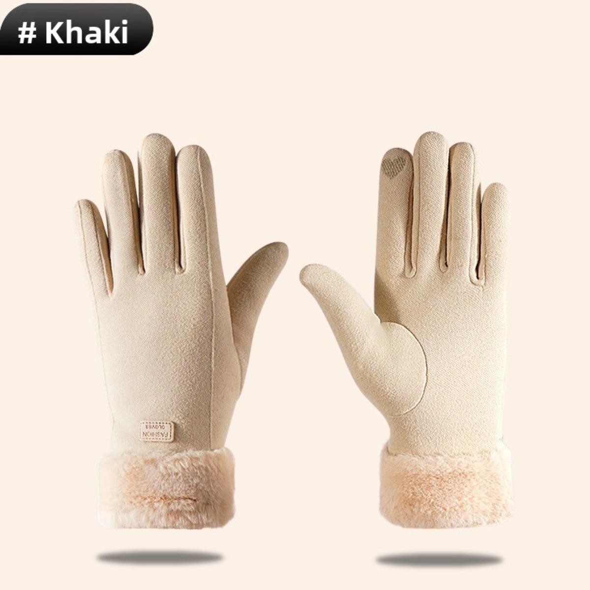 Зимние сенсорные перчатки с плюшевой подкладкой, толстые теплые перчатки, унисекс, прочное полиэфирное волокно, зимняя одежда бежевый