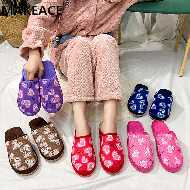 Зимние теплые женские домашние хлопковые тапочки, модные плюшевые толстые замшевые закрытые тапочки большого размера в форме сердца, модна...