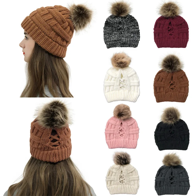 Зимние теплые женские шапки и кепки, плюшевые шапочки, эластичная вязаная шапка, шапка с открытой спиной, шапочки для взрослых, облегающие ш...