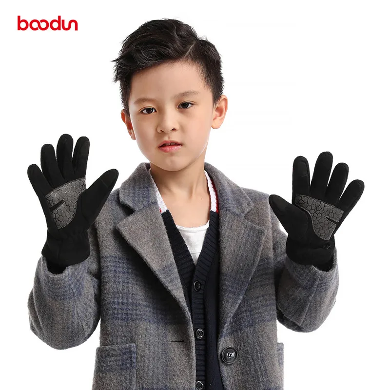 Зимние теплые флисовые лыжные перчатки BOODUN для мальчиков и девочек, перчатки с сенсорным экраном для сноуборда, катания на лыжах, теплые спо...
