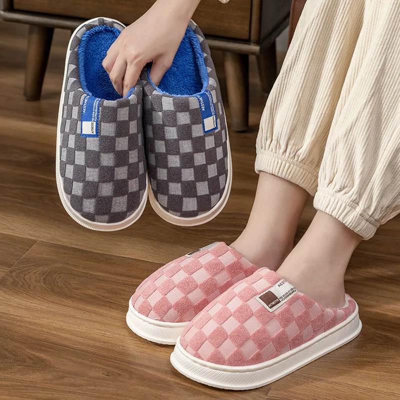Зимние теплые хлопковые тапочки, женская обувь, домашние удобные нескользящие плюшевые теплые тапочки, мужская домашняя обувь на платформе...