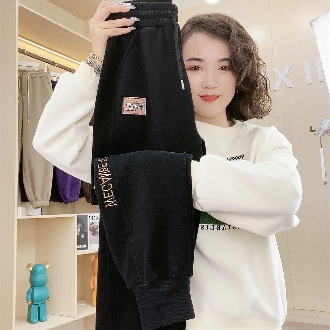 Зимние толстые женские брюки, термобелье, повседневные спортивные штаны, брюки с эластичной резинкой на талии M чёрный