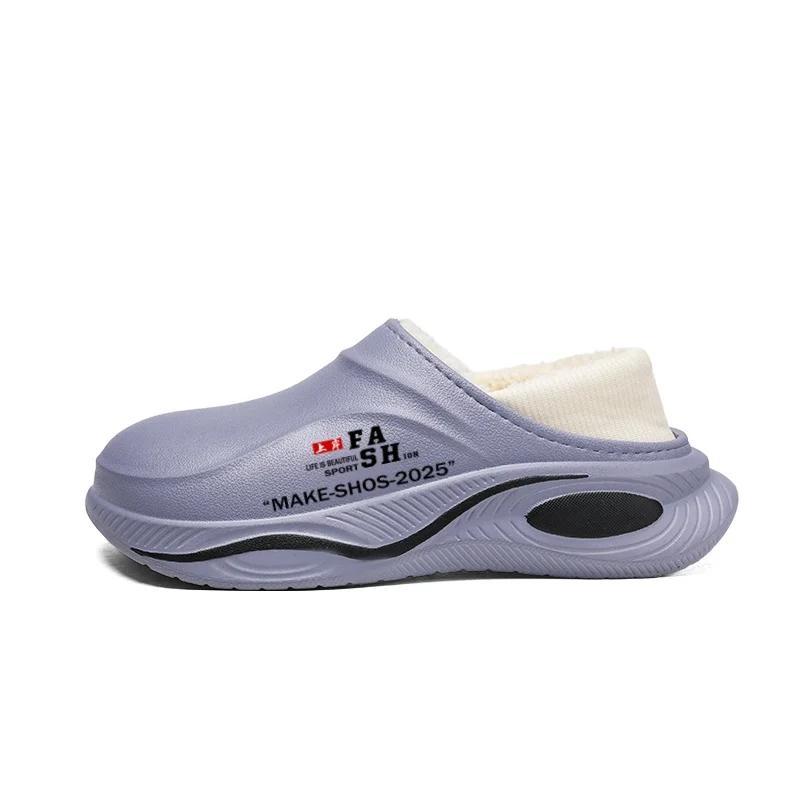 Зимние хлопковые тапочки для дома, мужские нескользящие тапочки из ЭВА, модные, сохраняющие тепло, водонепроницаемые, повседневные, мужские, повседневные туфли, основной толчок 44-45 серый