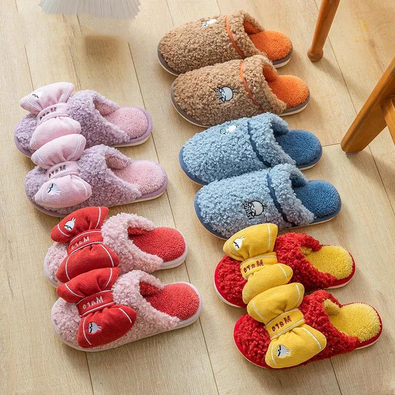 Зимние хлопковые тапочки для женщин, домашняя теплая нескользящая обувь, Симпатичные Мультяшные плюшевые тапочки для пар, мужские домашние...