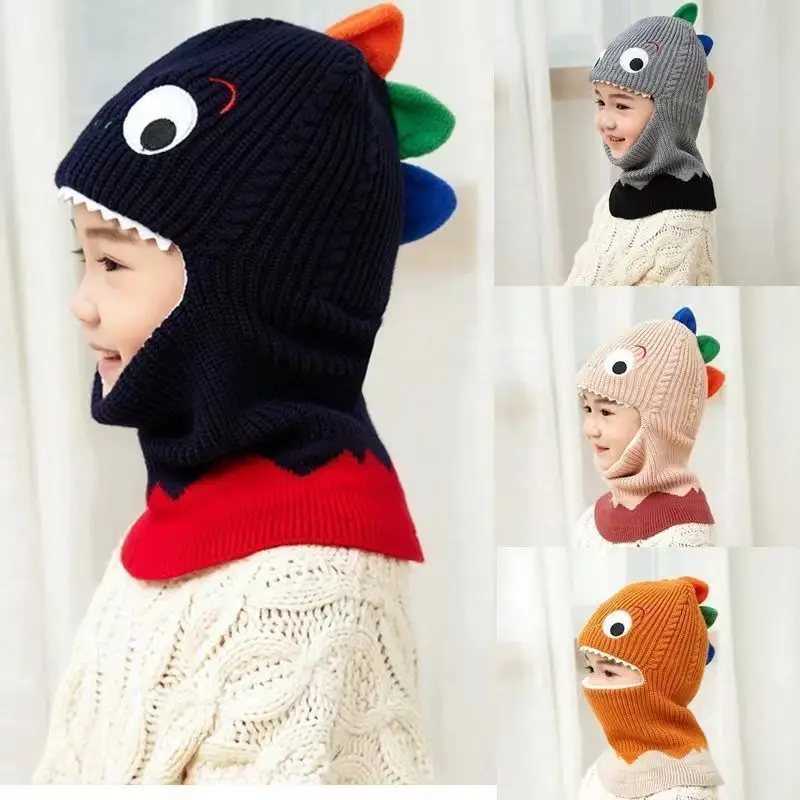 Зимние шапки для мальчиков и девочек, осенняя Милая шапка с динозавром, шарф с защитой шеи, теплые модные женские шапки 2022 года, новая Балакл...