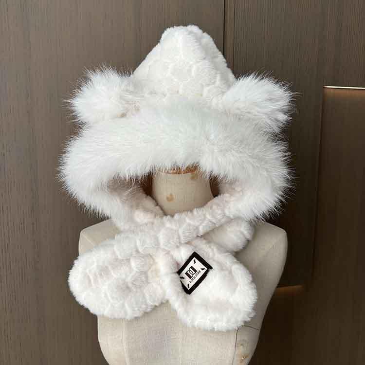 Зимний Универсальный Плед Плюшевый Шапка Шарф Интегрированный Набор из Двух Предметов Утолщенная Ветрозащитная Шапка-Ушанка Женская Студенческая Цельная Шапка One Size молочный белый