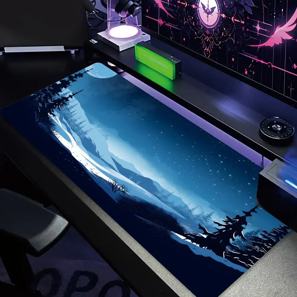Зимний ночной горный лес снежная сцена большой коврик для мыши настольный коврик игровой коврик аксессуары для ПК клавиатура коврик для мыши mauspad офисный коврик