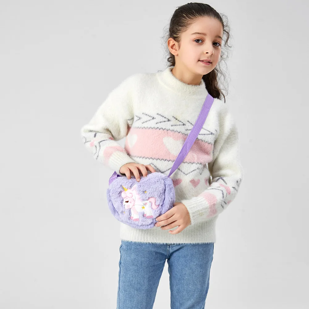 Зимний плюшевый Кошелек для маленьких девочек с милым мультяшным единорогом в форме сердца, кошелек для мелочи, Детская Милая пушистая Наплечная Сумка-слинг через плечо