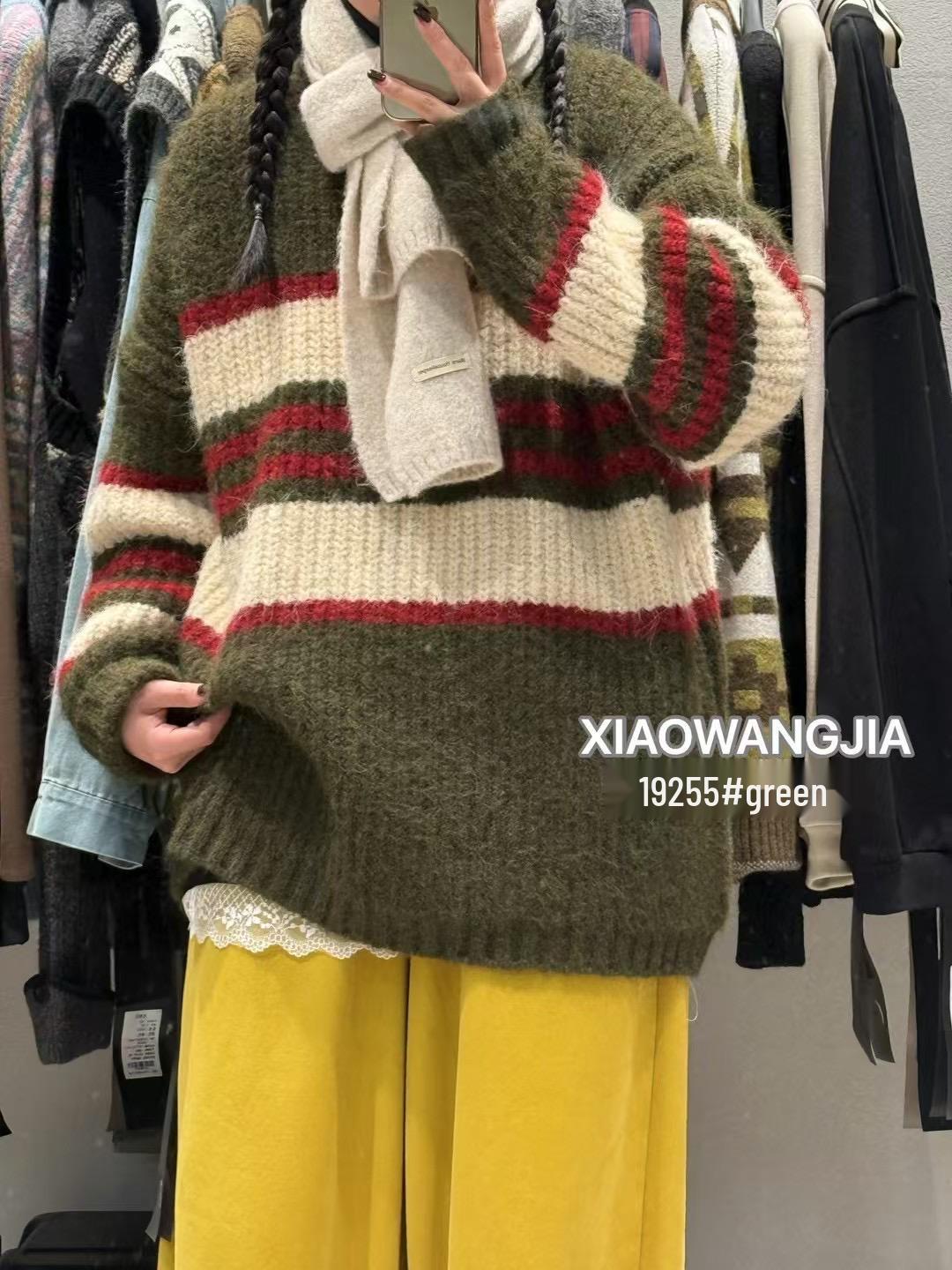 Зимний пуловер Сяо Вана в корейском стиле, больших размеров, повседневный, цветной блок, в полоску One Size
