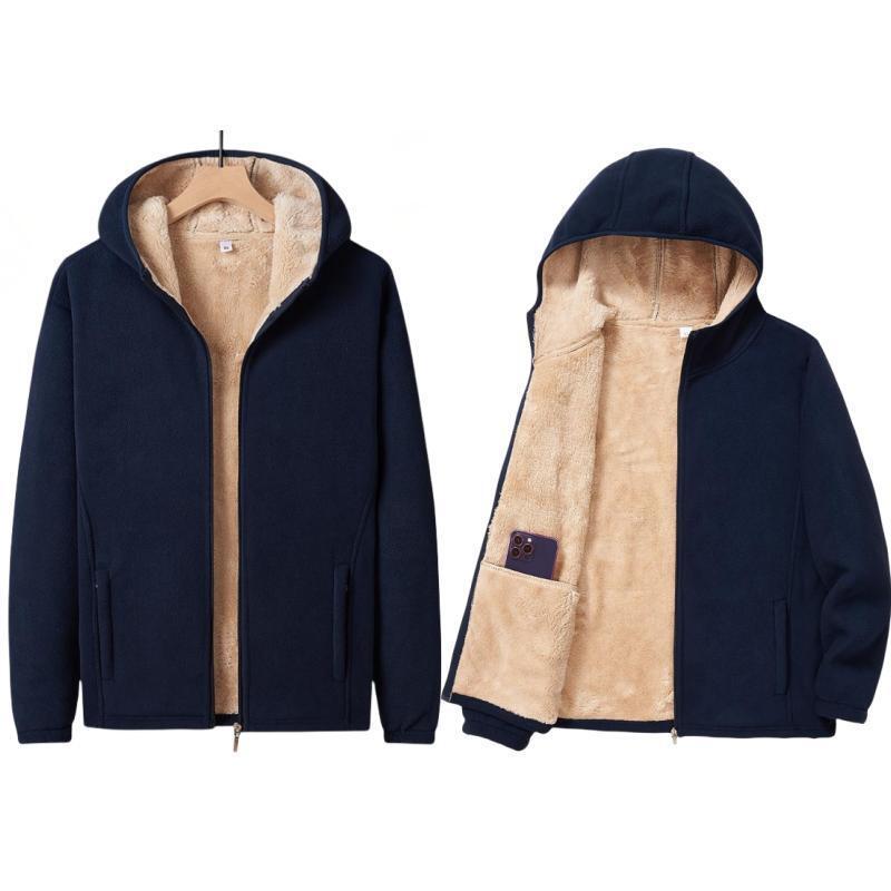 Зимний свитер с капюшоном для мужчин, утепленная вельветовая верхняя одежда, ветрозащитная, теплая, сохраняющая тепло и фиксирующая температуру флисовая куртка большого размера L темно-синий