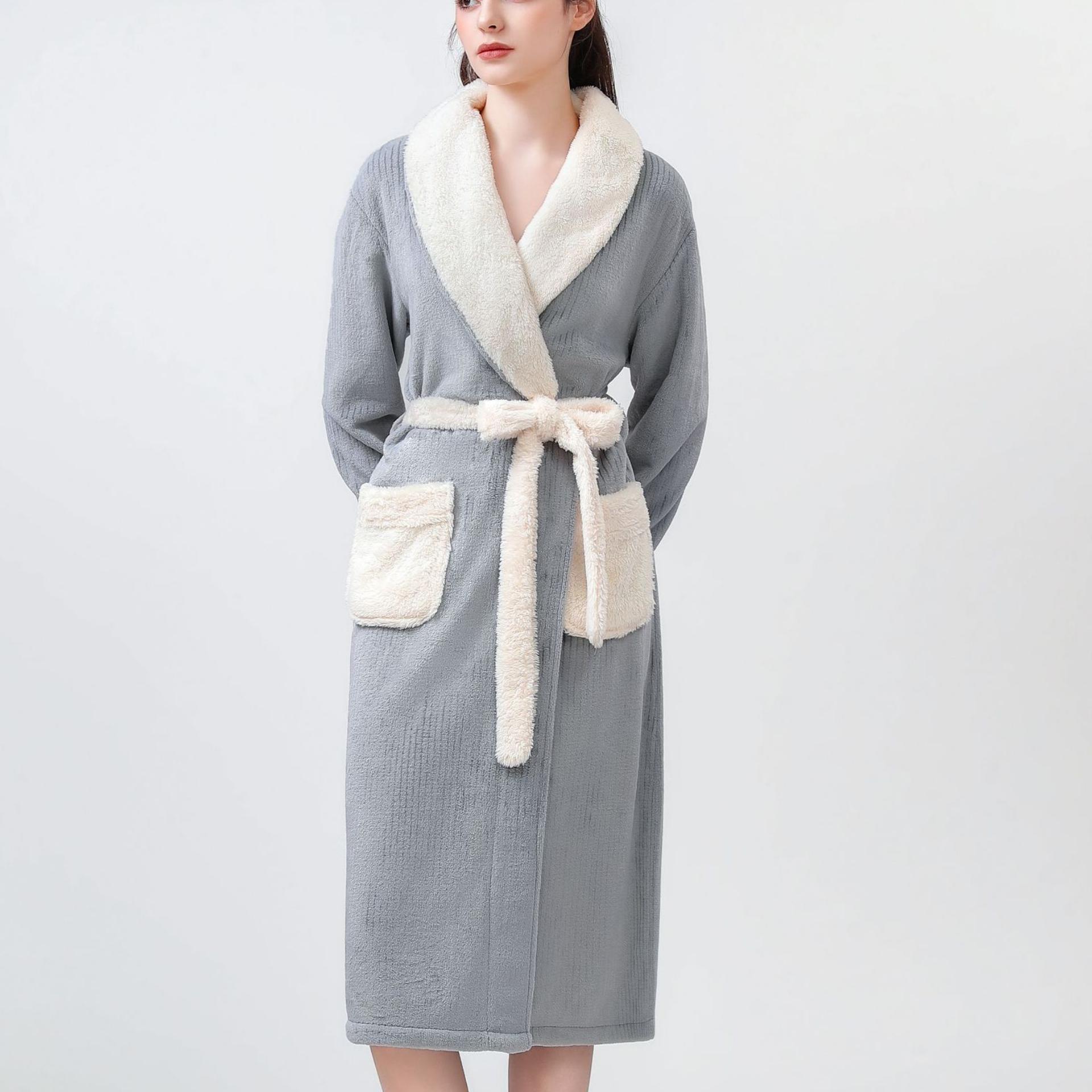 Зимний теплый коралловый бархатный халат-кимоно, платье, утолщенная фланель, женская пижама, домашняя одежда, свободная домашняя одежда L серый