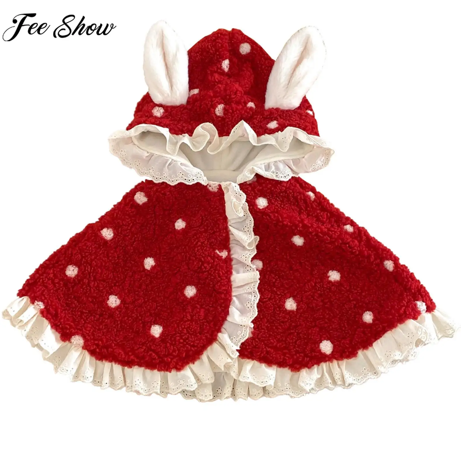 Зимний теплый милый плащ с капюшоном и кроликом лося для маленьких девочек, утепленная флисовая накидка, пальто на Рождество, Новый год, вечерние пончо, верхняя одежда