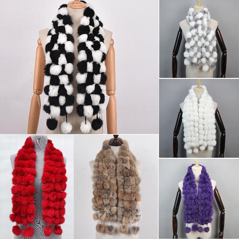 Зимний теплый шарф из натурального кроличьего меха, шаль с помпоном, женские шарфы с помпоном