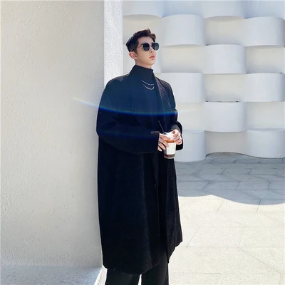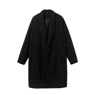 Зимний тренд INS в Южной Корее очень простой, чисто черное шерстяное пальто, мужское свободное, в стиле ретро, уплотненное пальто-Тренч