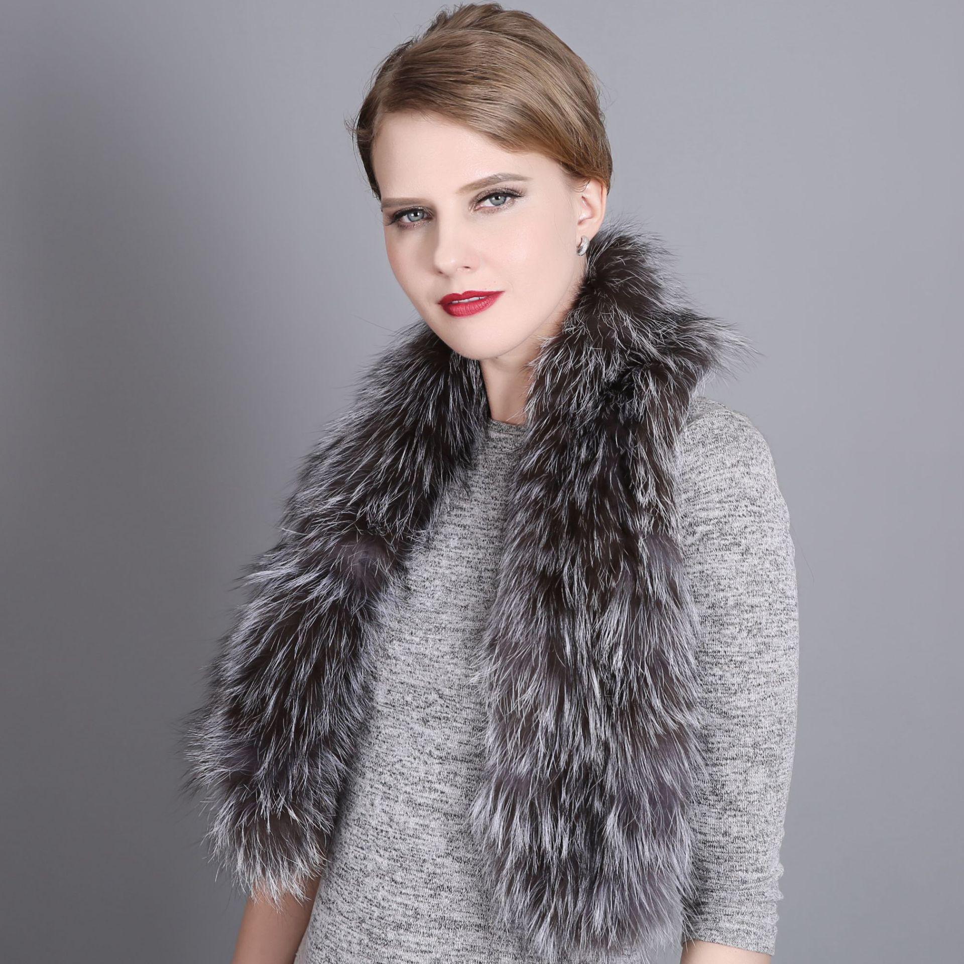 Зимний универсальный теплый меховой шарф шарф из лисьего меха плетеный шарф из серебристой лисьей шерсти двойной круглый шарф шейный платок шарф сейчас 80-100cm