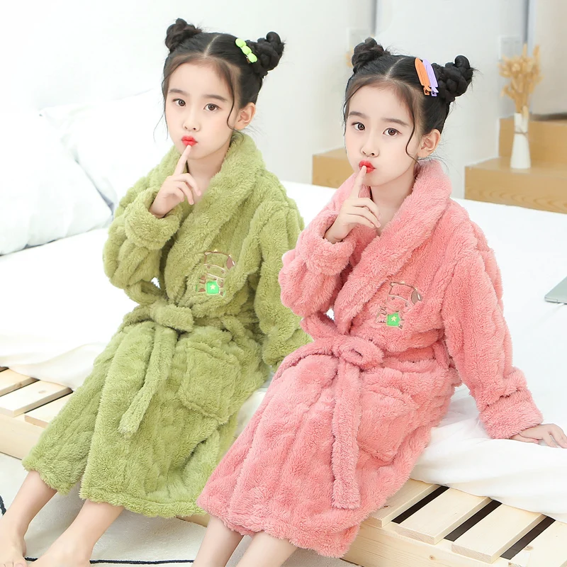 Зимний фланелевой банный халат для детей, модные детские ночные рубашки принцессы для девочек, коралловый бархат с героями мультфильмов для малышей, утепленная теплая домашняя одежда