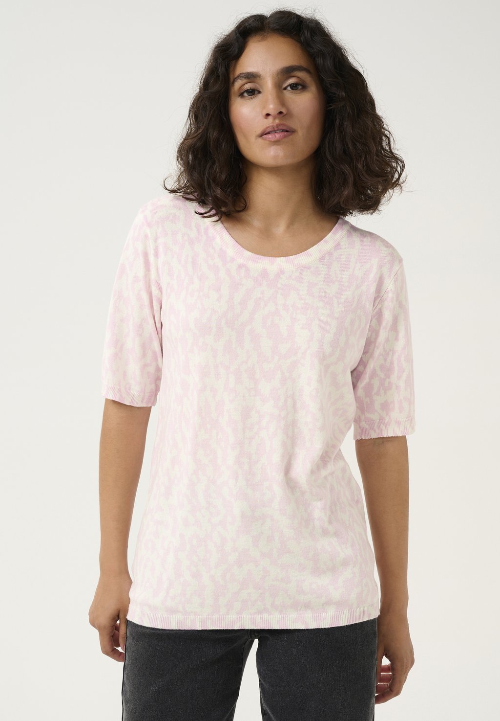 Женский модный повседневный универсальный повседневный топ с круглым вырезом и рукавами три четверти с принтом