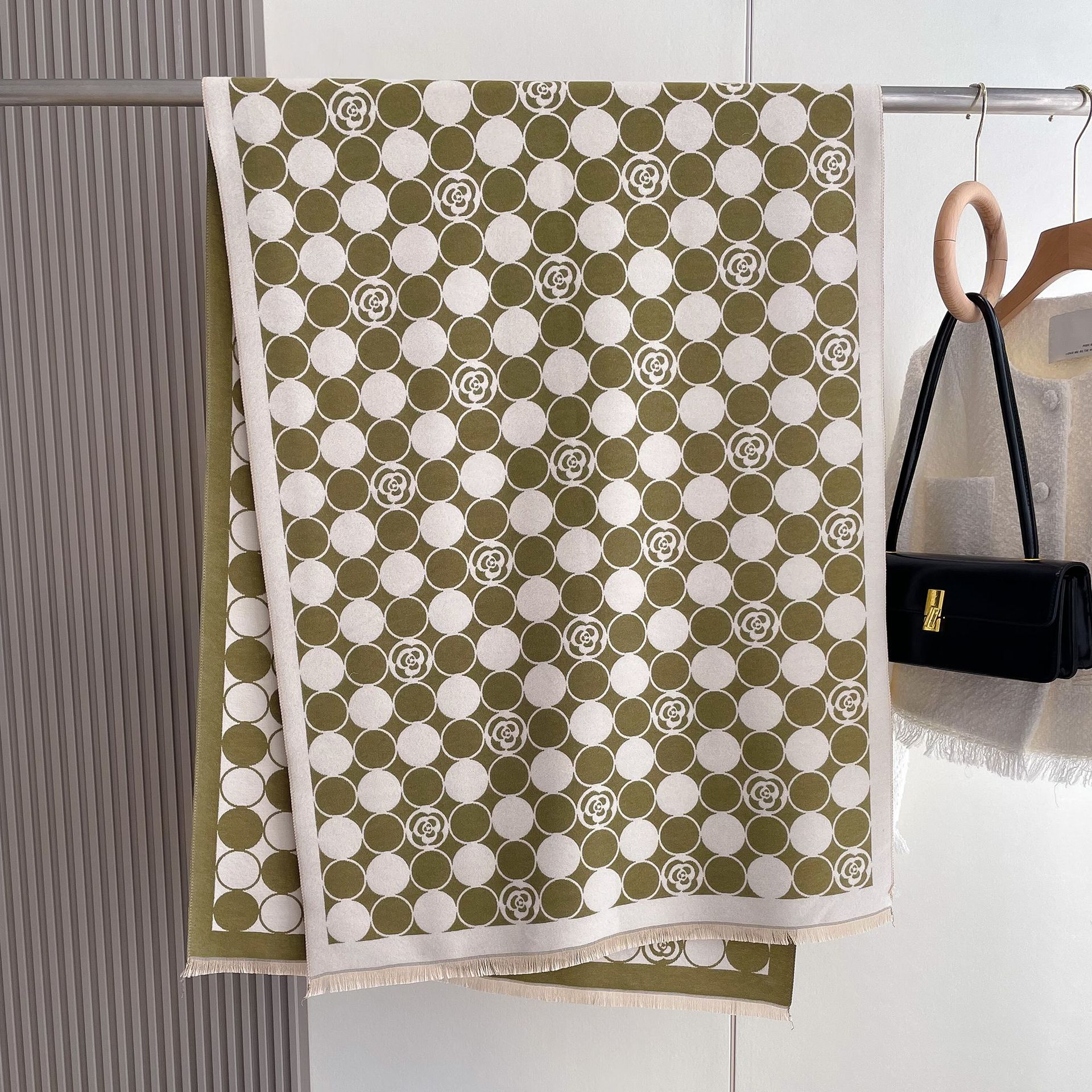 Зимний шарф из имитации кашемира Женский шарф с камелией Корейская версия Шаль ДунДэмэун Универсальный Милый Утолщенный шарф Тренд 180*65 зелёный