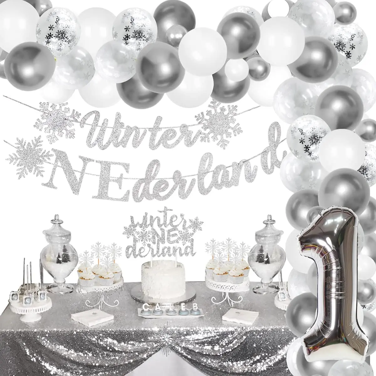 Зимний Onederland, украшения на 1-й день рождения, воздушный шар, серебряный шар для мальчиков и девочек, тематика замороженных снежинок, товары д...