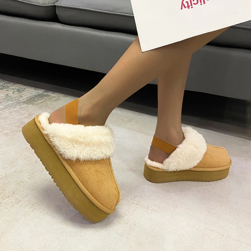 Зимняя Брендовая обувь из плюша и хлопка, модель 2023 года, новая модная повседневная обувь на платформе, домашние замшевые меховые теплые шле...