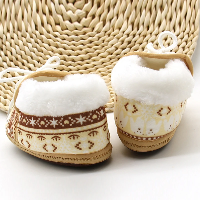 Зимняя Детская плюшевая обувь, мягкая теплая обувь с принтом для маленьких мальчиков и девочек, обувь для малышей, нескользящая обувь на под...