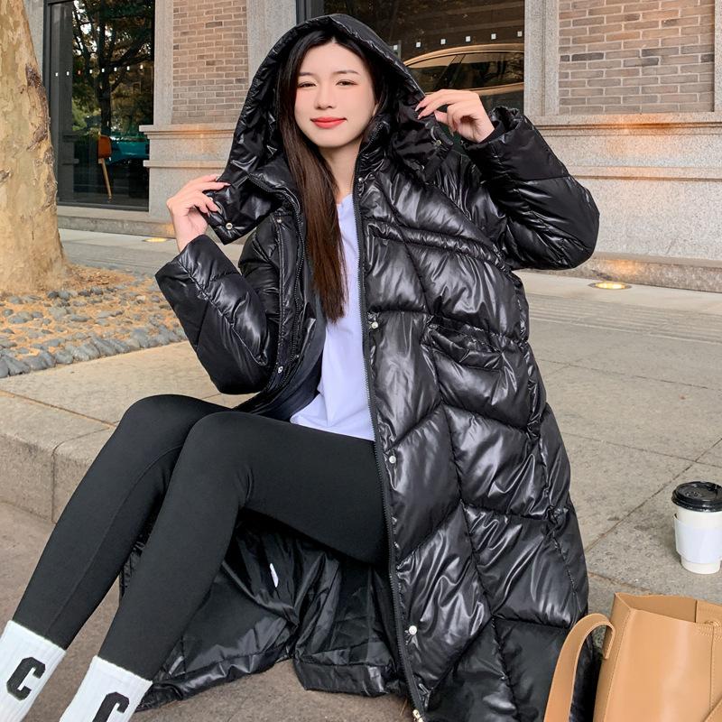 Зимняя Новая Толстая Куртка с Капюшоном на Пуху и Хлопке Женская Средней Длины Свободного Кроя XXL чёрный