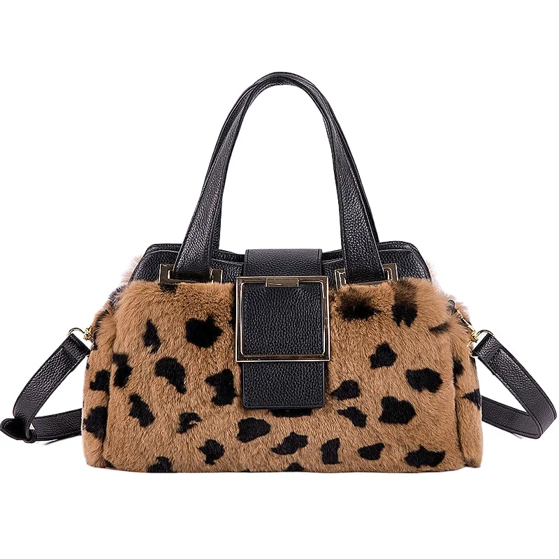 Зимняя Новинка, пикантная ручная плюшевая сумка с леопардовым принтом из меха кролика Рекс, Высококачественная меховая Диагональная Сумка на одно плечо для женщин