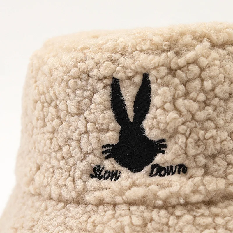 Зимняя Рыбацкая шляпа из овечьей шерсти Женская модная Панама с мультяшным кроликом широкие поля Плоская верхняя непродуваемая шляпа