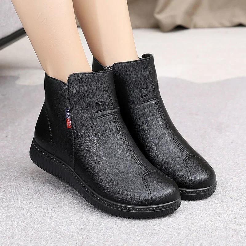 Зимняя Теплая Обувь Женская Черные Короткие Ботинки с Мехом Женские Кожаные Ботильоны Женские Водонепроницаемые Женские Ботильоны на Молнии 41