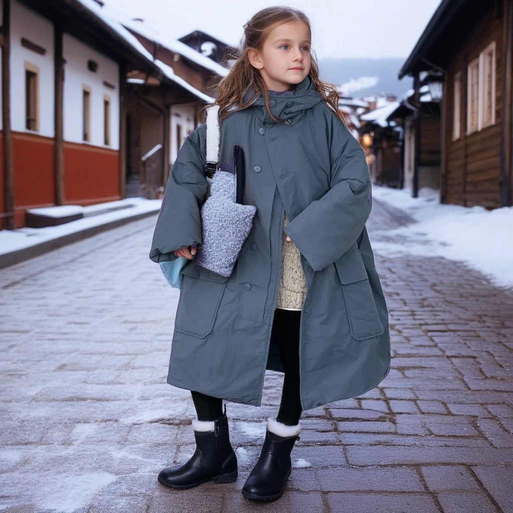 Зимняя верхняя одежда для девочек-подростков, длинное стеганое пальто с капюшоном, утепленная ветрозащитная куртка-парка, повседневная универсальная детская уличная ветровка
