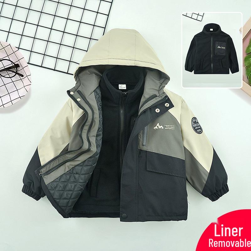 Зимняя ветровка для мальчиков 2025: Куртка-три-в-одном со съемной флисовой подкладкой для весны и осени. 170 чёрный