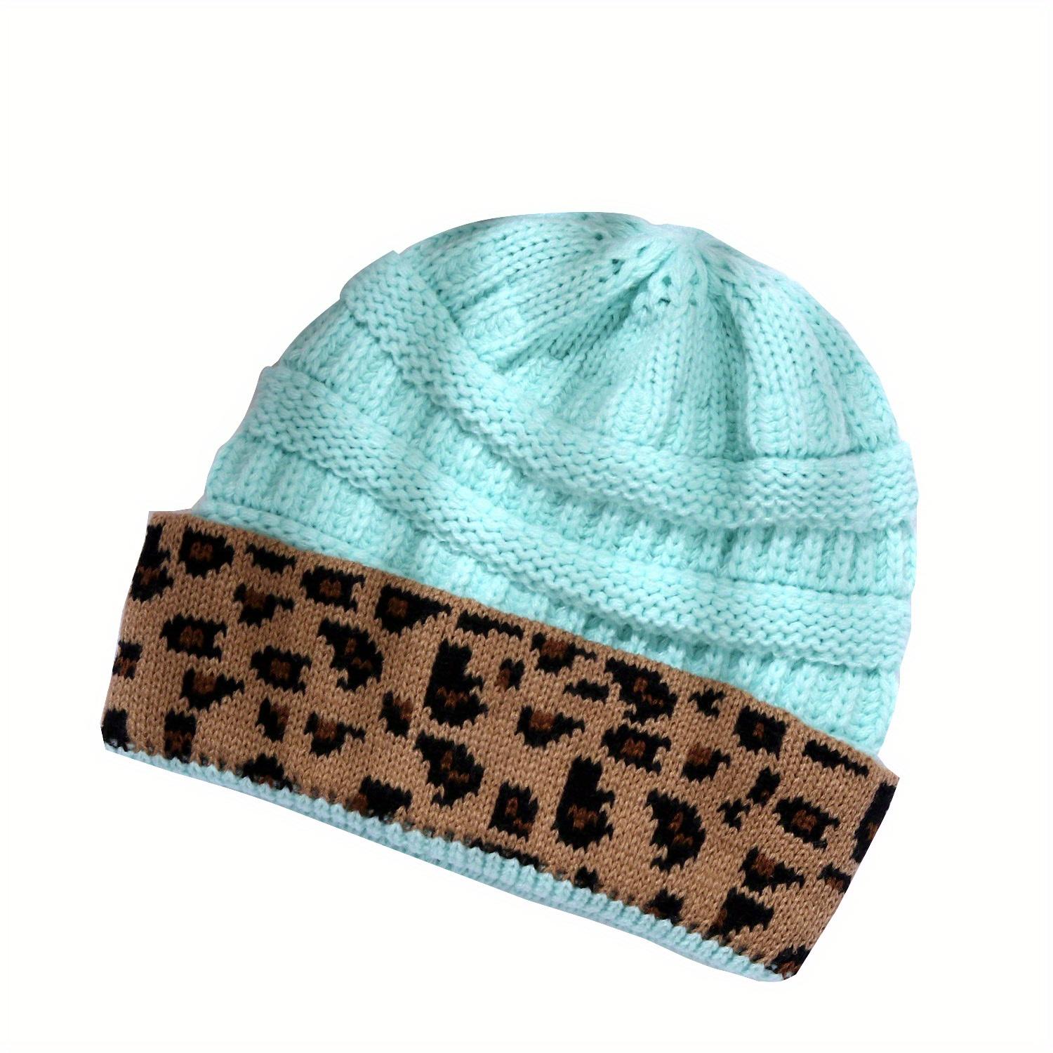 Зимняя вязаная шапка с леопардовым принтом, ветрозащитная повседневная модная теплая шапка-бини в стиле хип-хоп, эластичная переносная зимняя шапка мятный зеленый