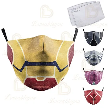 2pcs/lot Superhero Cosplay Face Masks Print Fabric Mask Adult Protective PM2.5 Reusable Mouth Cover Dust Washable Mouth Masks