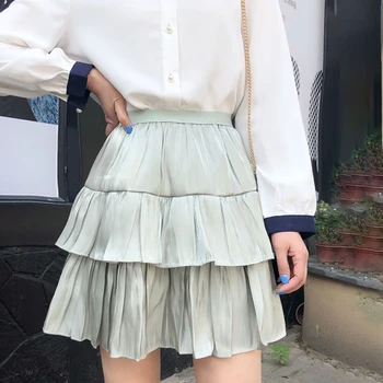 Satin Skirts Women Shorts Mini Skirts A-Line Elastic High Waist Pleated Skirts Double Layer Korean Elegant Summer Skirt New W001