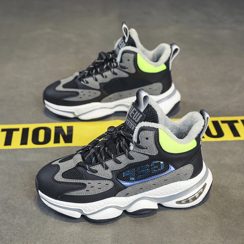 Зимняя детская обувь, ботинки для мальчиков, уличная плюшевая детская теплая хлопковая обувь, зимние спортивные высокие меховые кроссовки на платформе для мальчиков
