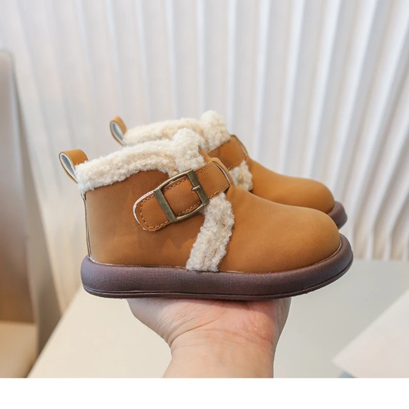 Зимняя детская обувь для девочек, зимние сапоги, теплая плюшевая хлопковая обувь с мягкой подошвой, детские кожаные ботильоны для мальчиков, Botas