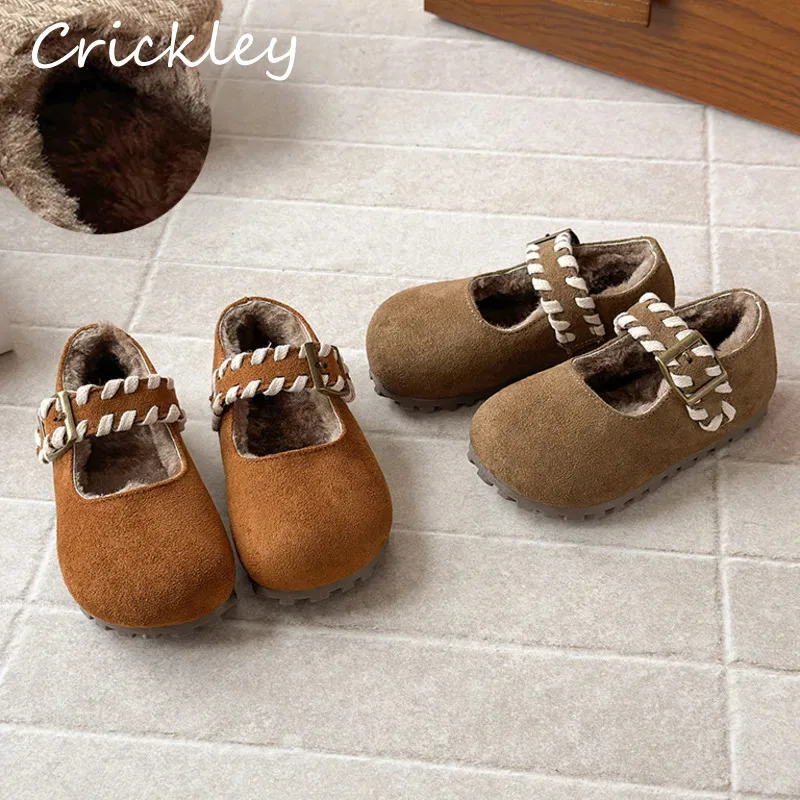 Зимняя детская обувь на плоской подошве с однотонной пряжкой, замшевая обувь из искусственной кожи с крючками для девочек, теплая плюшевая детская зимняя обувь для малышей