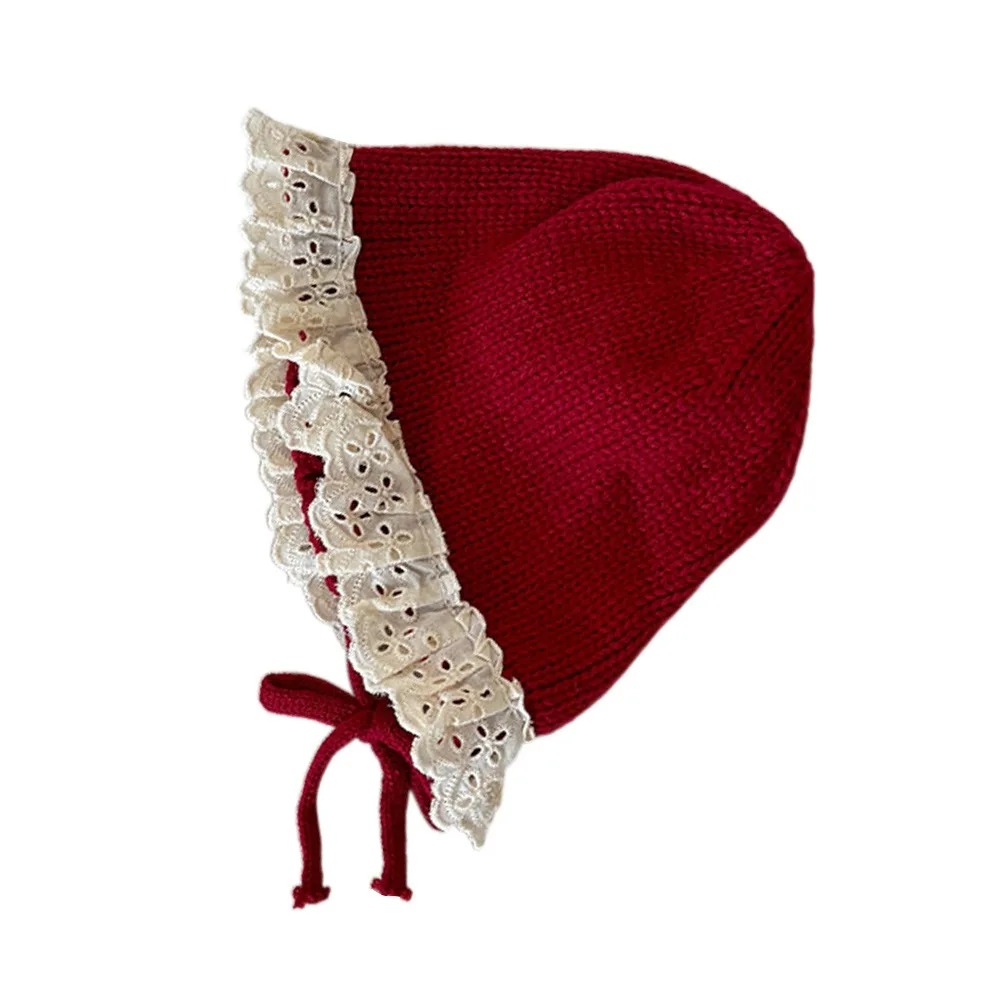 Зимняя детская шапка с рюшами в корейском стиле, теплые защитные шапки в стиле принцессы, мягкая вязаная шерстяная шапка для мальчиков и девочек