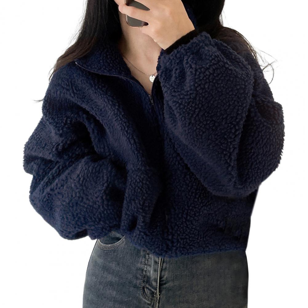 Зимняя женская куртка из толстого флиса с воротником-стойкой, застежкой-молнией, длинными рукавами, теплая ветрозащитная, сохраняющая тепло куртка для отдыха на открытом воздухе M темно-синий