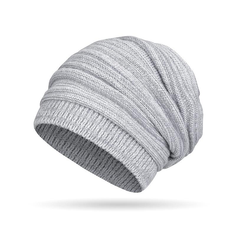 Зимняя женская мужская плиссированная теплая шапка, утепленная эластичная вязаная шапка, двухцветная шапка светло-серый