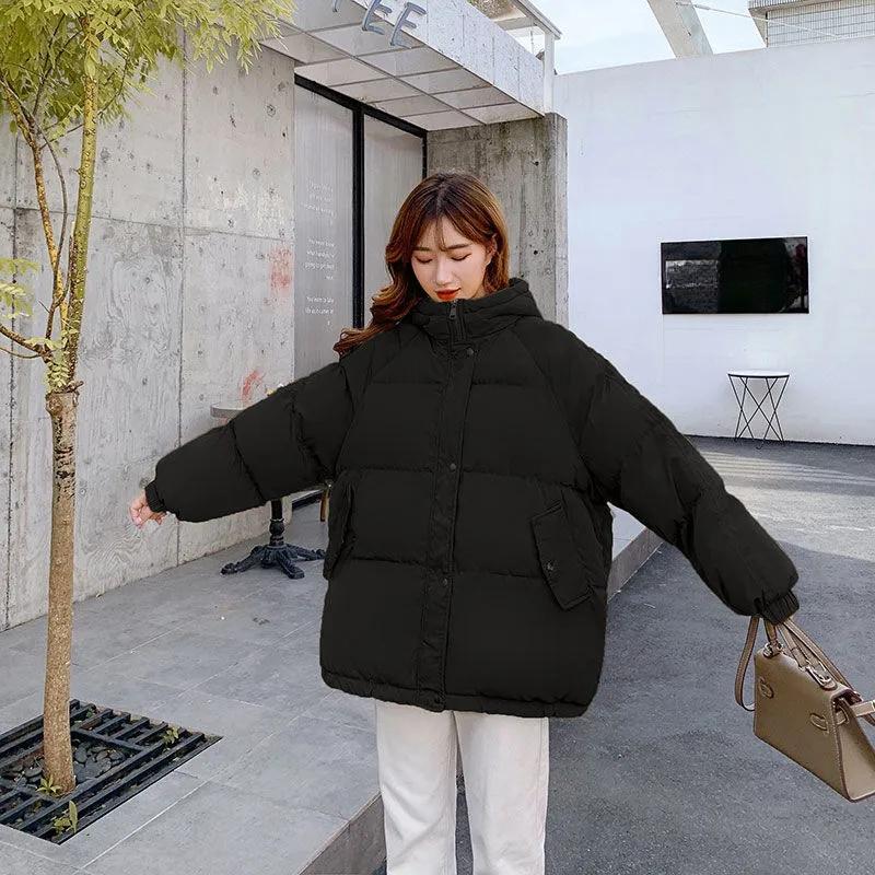 Зимняя женская стеганая куртка-пуховик для студентов, короткая свободная утолщенная теплая стеганая куртка S чёрный