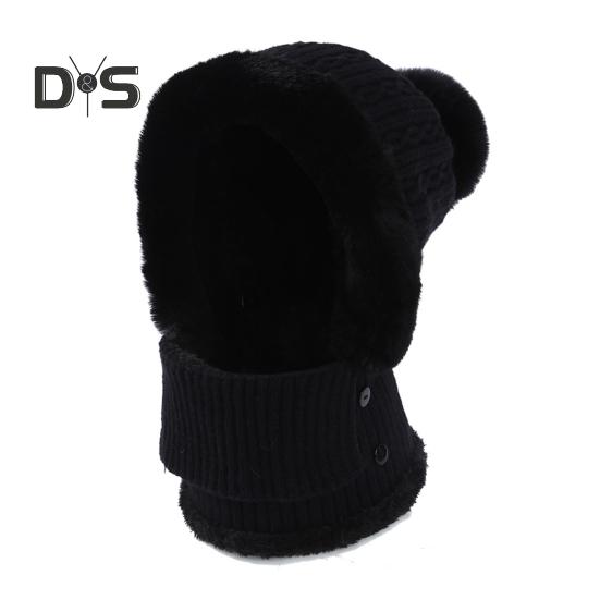 Зимняя женская шапка с шарфом, вязаная толстая плюшевая ветрозащитная шапка с помпоном, полностью защищающая велосипедная кепка, эластичный головной убор