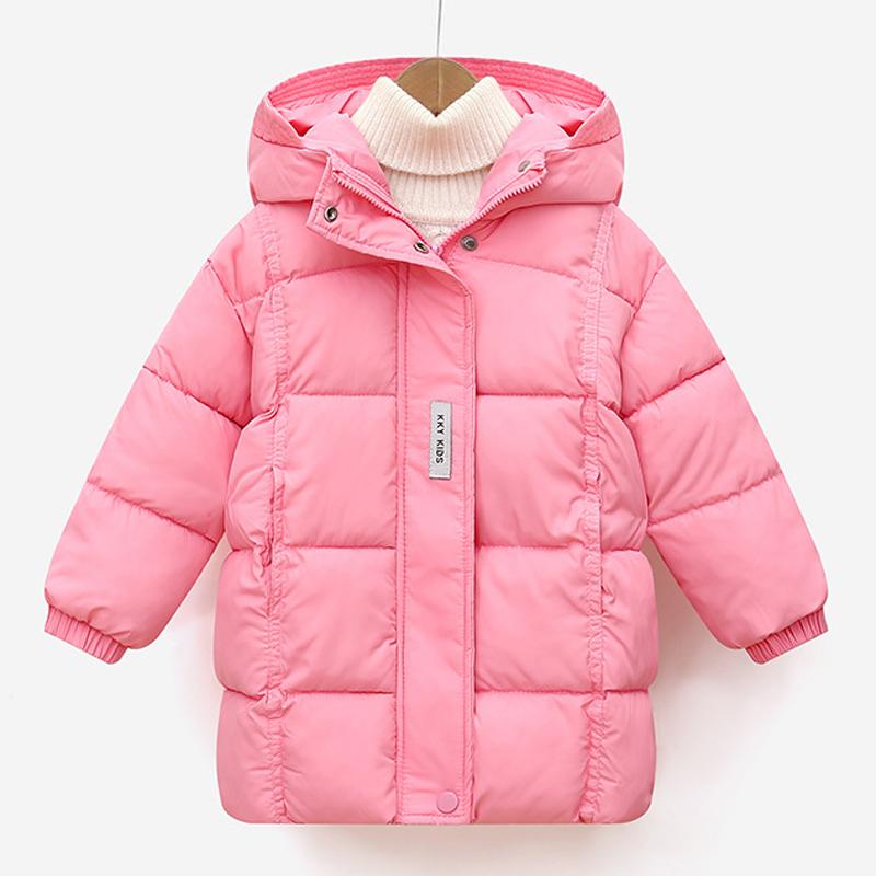 Зимняя куртка для девочек-подростков, длинная, однотонная, с буквенным принтом, плотная, сохраняющая тепло, с капюшоном, пальто для детей, пуховая хлопковая верхняя одежда 150 розовый