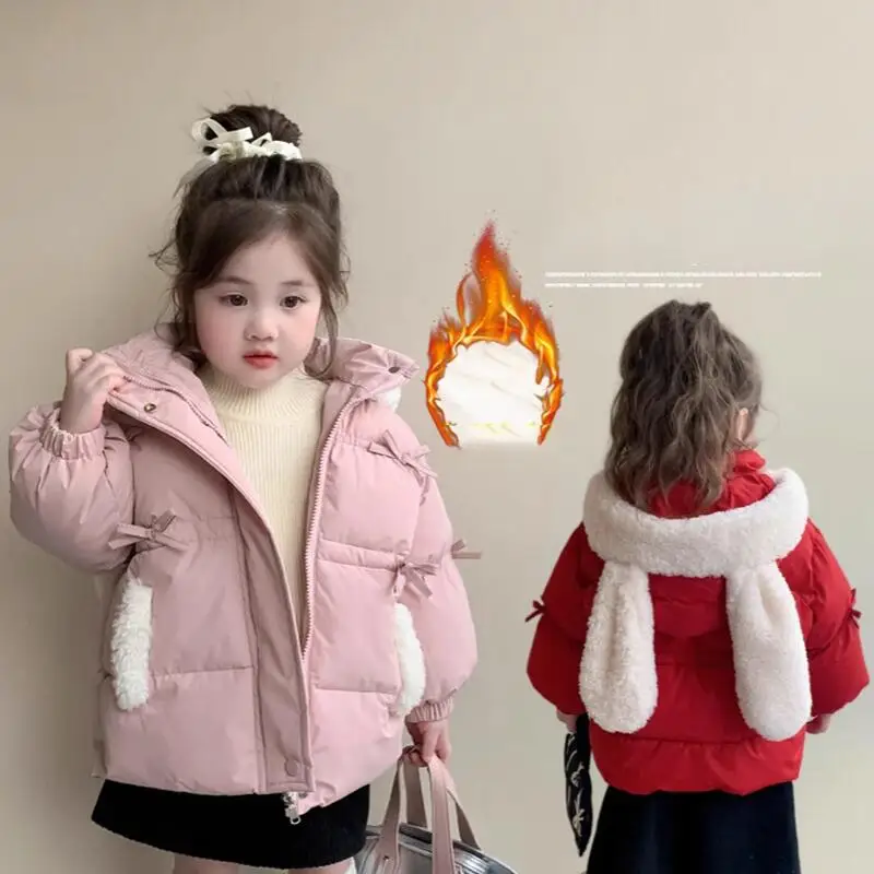 Зимняя куртка на хлопковой подкладке для девочек, осеннее утепленное пальто с капюшоном, топы, брюки, детская теплая кавайная модная новая стильная повседневная одежда