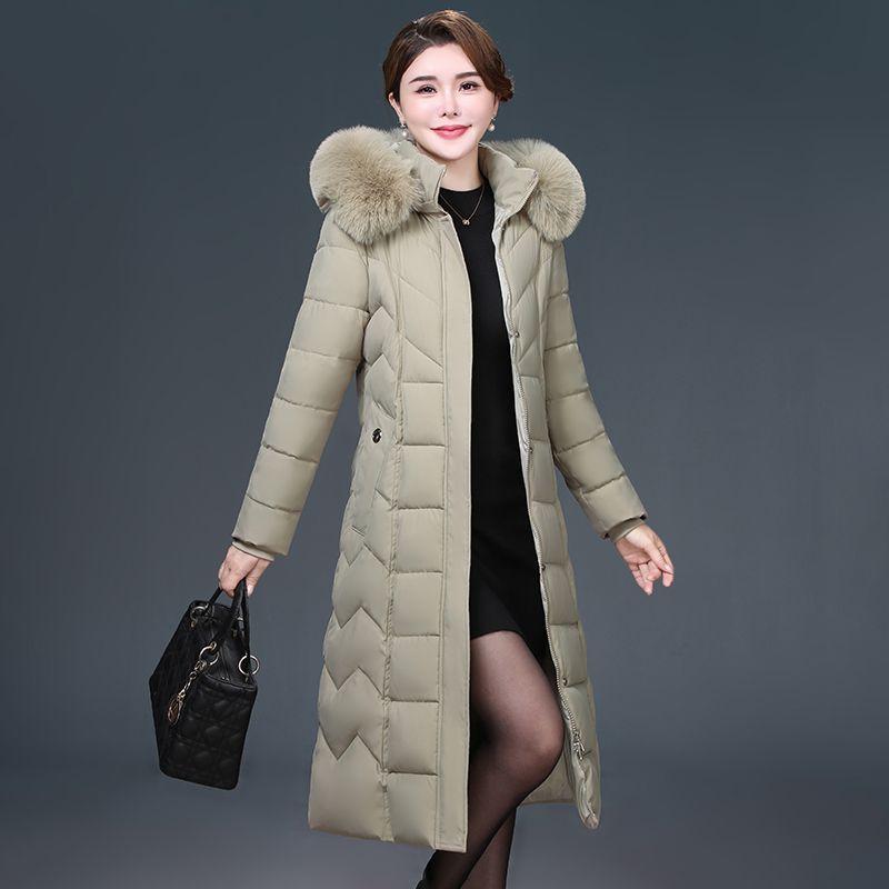 Зимняя куртка средней длины пуховик выше колена большого размера утолщенное пальто для мам среднего и пожилого возраста XXXXL хаки