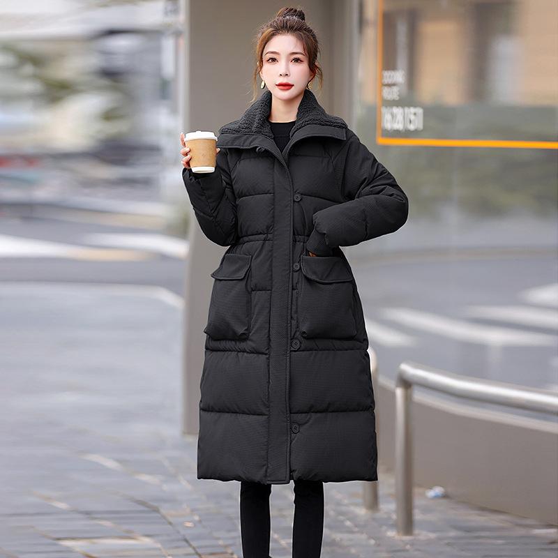 Зимняя куртка с лацканами на пуху с хлопковой подкладкой для девочек, длинная, до колена, утолщенная, новая, свободного кроя, с поясом, хлопковая куртка, пальто. XL