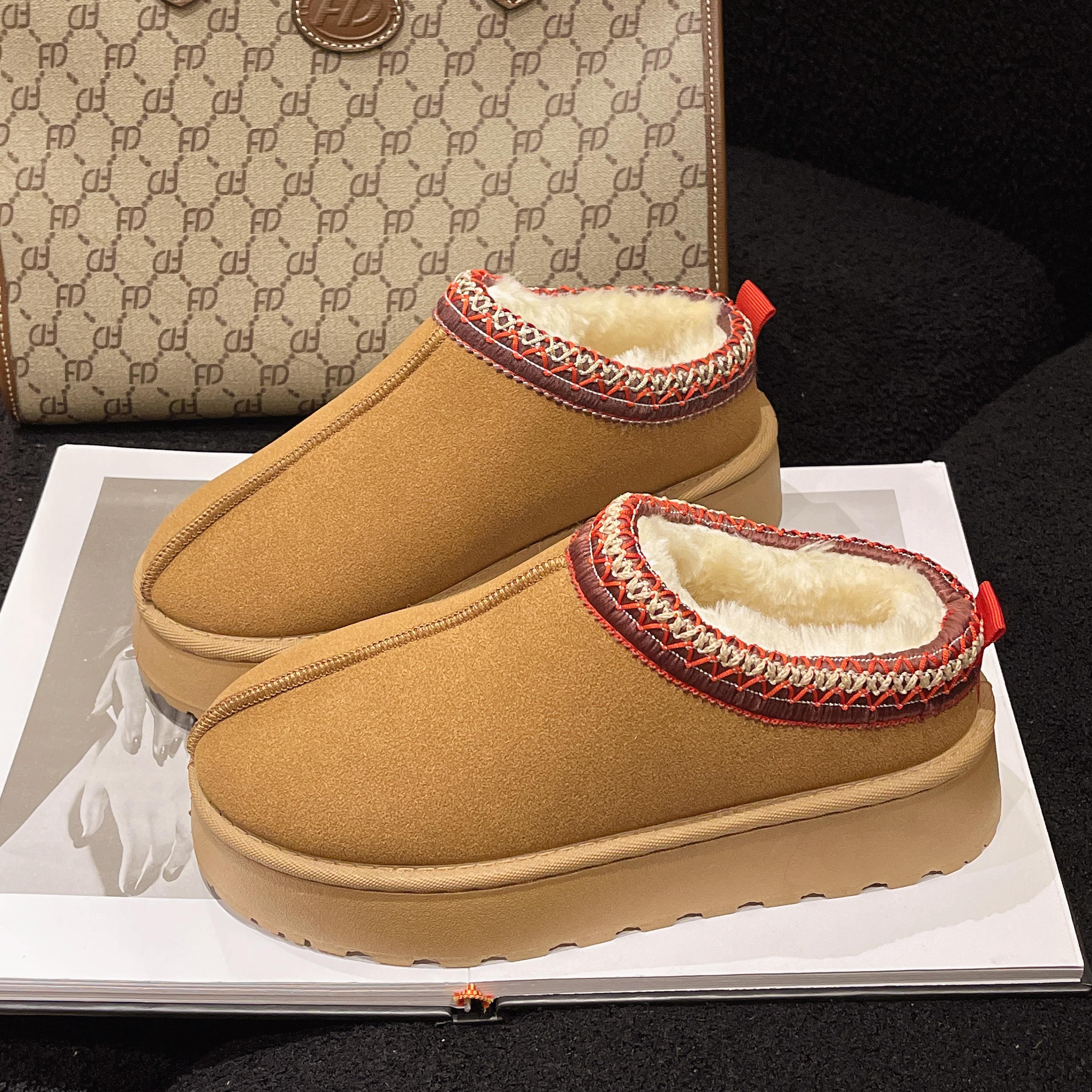 Зимняя мисс. Зимние ботинки 2025 Новые мужские и женские меховые тапочки Супер мини -теплые ботинки Мюллера Короткий плюш Дизайнерский бренд Телесные ботинки 38 малиновый