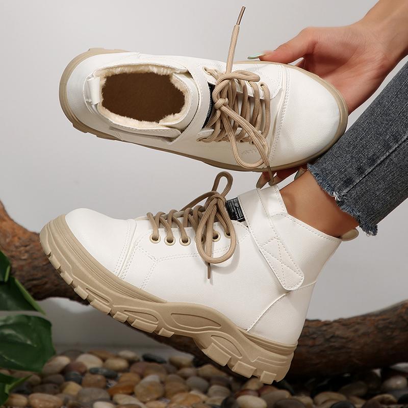Зимняя мода больших размеров женские ботильоны водонепроницаемые нескользящие снежные ботинки женские на толстой подошве плюшевые хлопковые туфли теплые кроссовки 45 белый